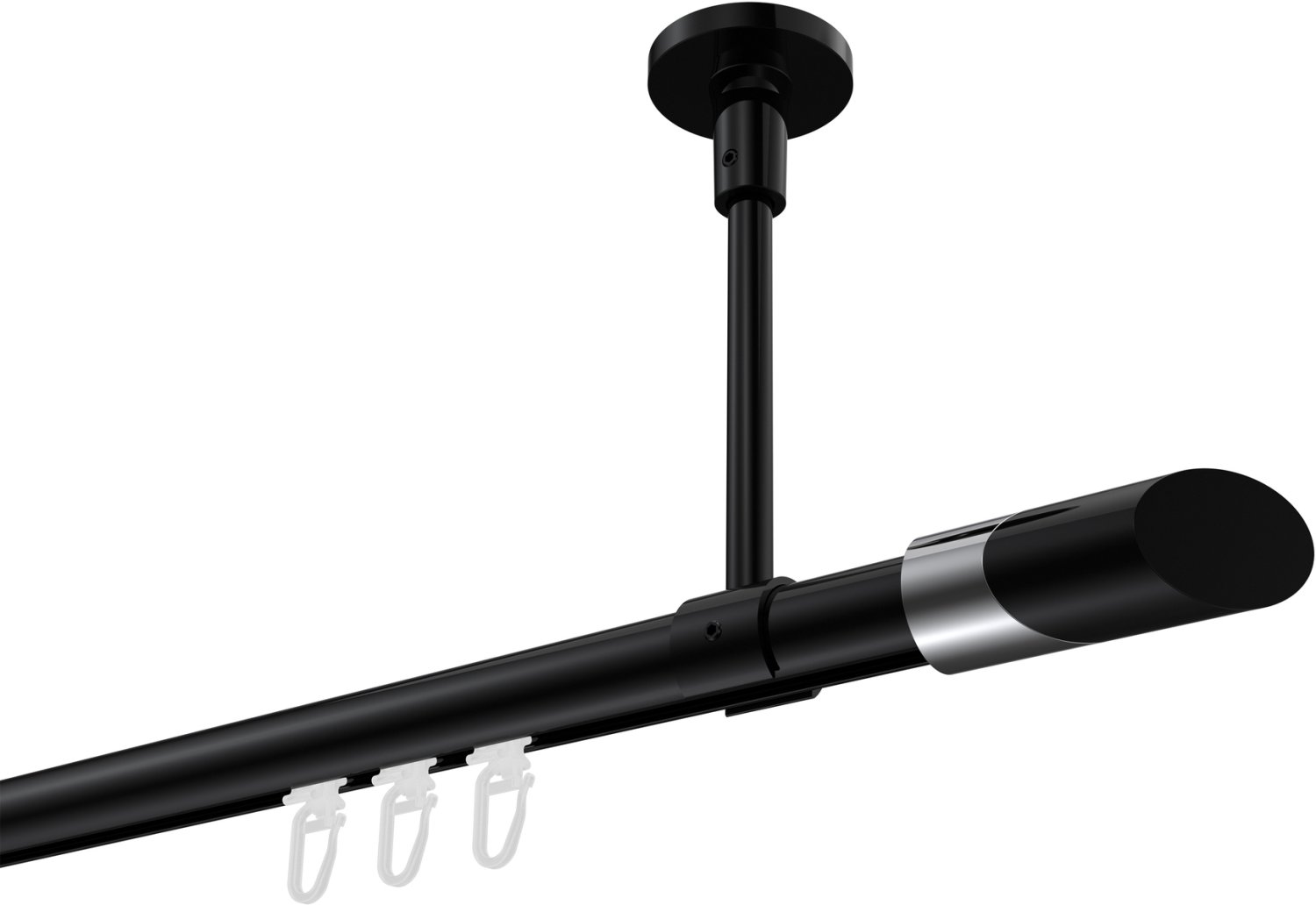 Gardinenstangen mit Innenlauf aus Aluminium / Metall in 20 mm Ø, 1-läufig, Modell SONETTE - Verano Schwarz