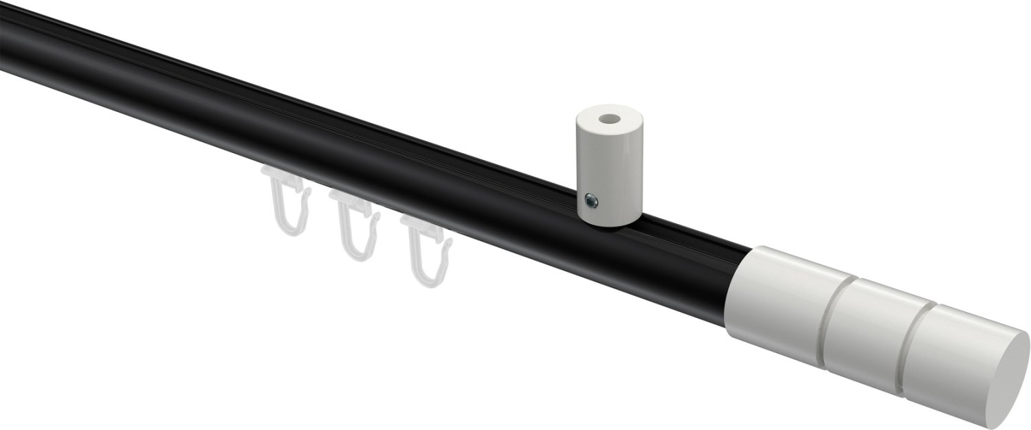 Gardinenstangen mit Innenlauf aus Aluminium / Metall in 20 mm Ø, 1-läufig, Modell SONIUS - Elanto Schwarz / Weiß