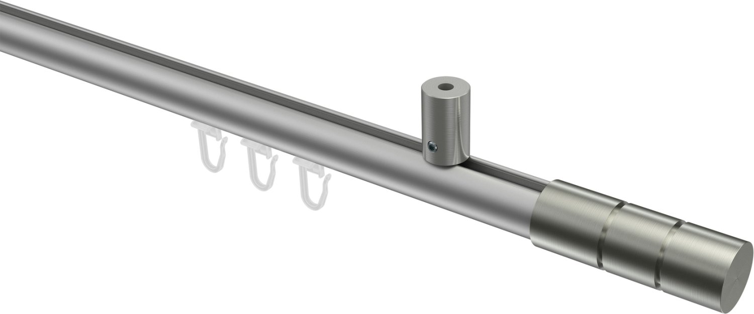 Gardinenstangen mit Innenlauf aus Aluminium / Metall in 20 mm Ø, 1-läufig, Modell SONIUS - Elanto Silbergrau / Edelstahl-Optik