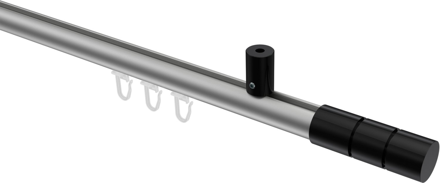 Gardinenstangen mit Innenlauf aus Aluminium / Metall in 20 mm Ø, 1-läufig, Modell SONIUS - Elanto Silbergrau / Schwarz