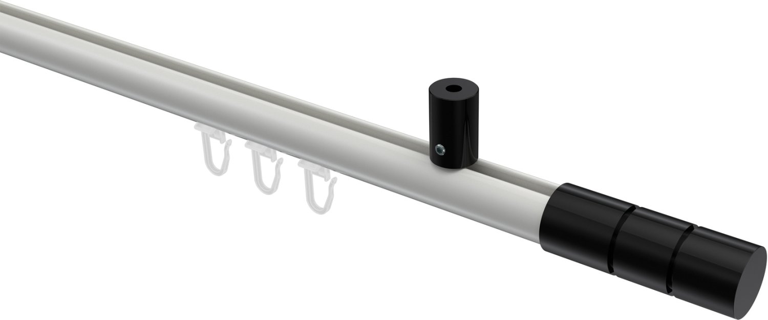 Gardinenstangen mit Innenlauf aus Aluminium / Metall in 20 mm Ø, 1-läufig, Modell SONIUS - Elanto Weiß / Schwarz