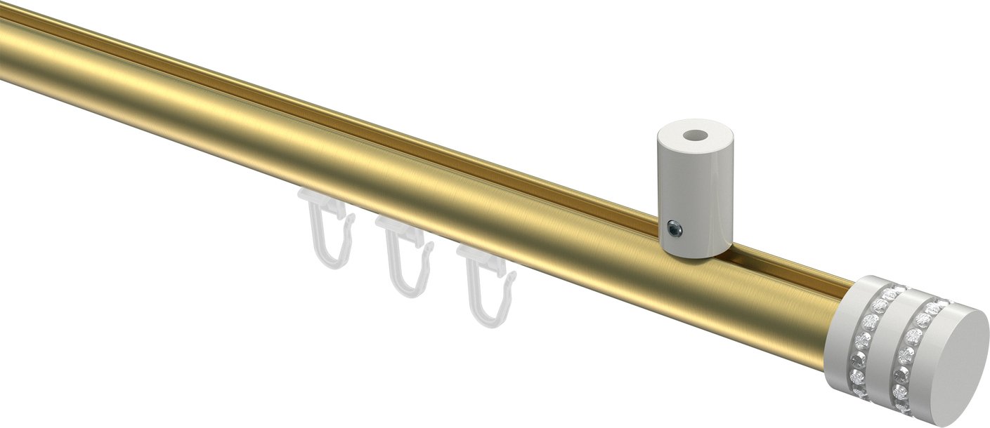 Gardinenstangen mit Innenlauf aus Aluminium / Metall in 20 mm Ø, 1-läufig, Modell SONIUS - Estana Messing-Optik / Weiß