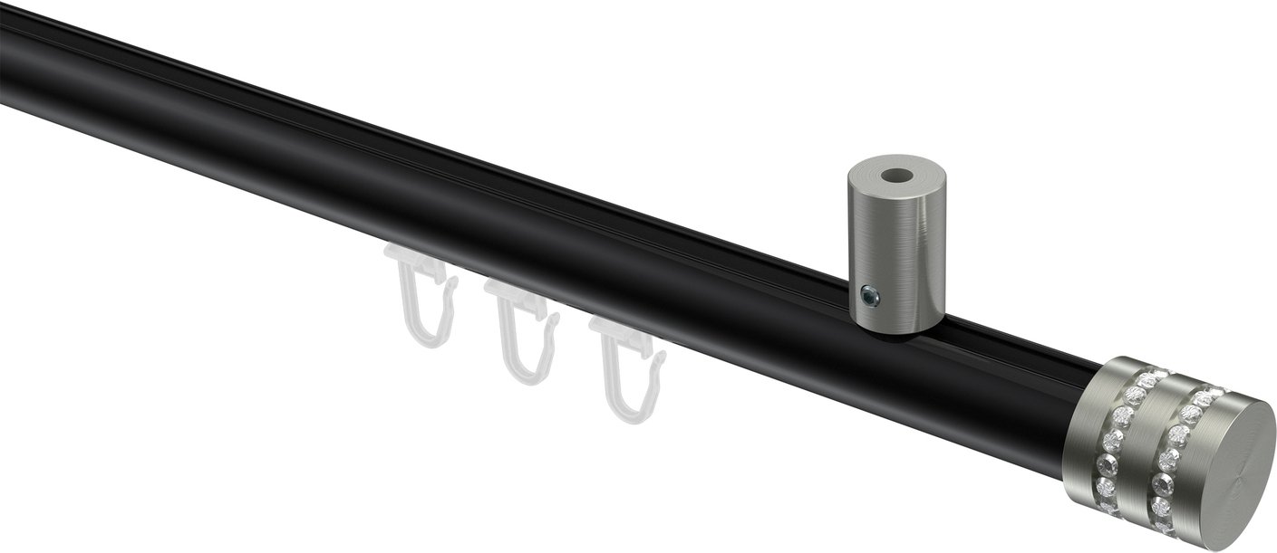 Gardinenstangen mit Innenlauf aus Aluminium / Metall in 20 mm Ø, 1-läufig, Modell SONIUS - Estana Schwarz / Edelstahl-Optik