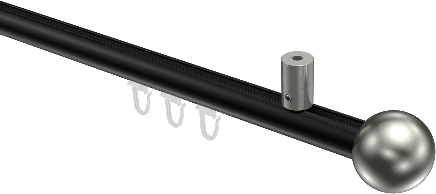 Informationen zu Innenlauf Gardinenstange Aluminium / Metall 20 mm Ø SONIUS - Luino Schwarz / Edelstahl-Optik: