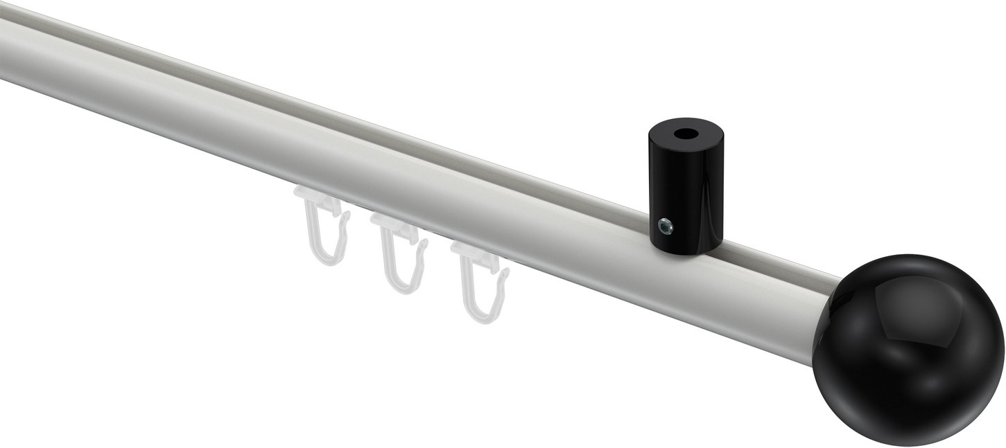 Gardinenstangen mit Innenlauf aus Aluminium / Metall in 20 mm Ø, 1-läufig, Modell SONIUS - Luino Weiß / Schwarz