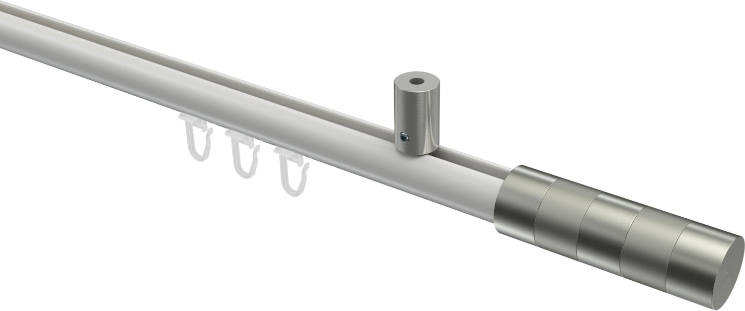 Gardinenstangen mit Innenlauf aus Aluminium / Metall in 20 mm Ø, 1-läufig, Modell SONIUS - Mavell Weiß / Edelstahl-Optik
