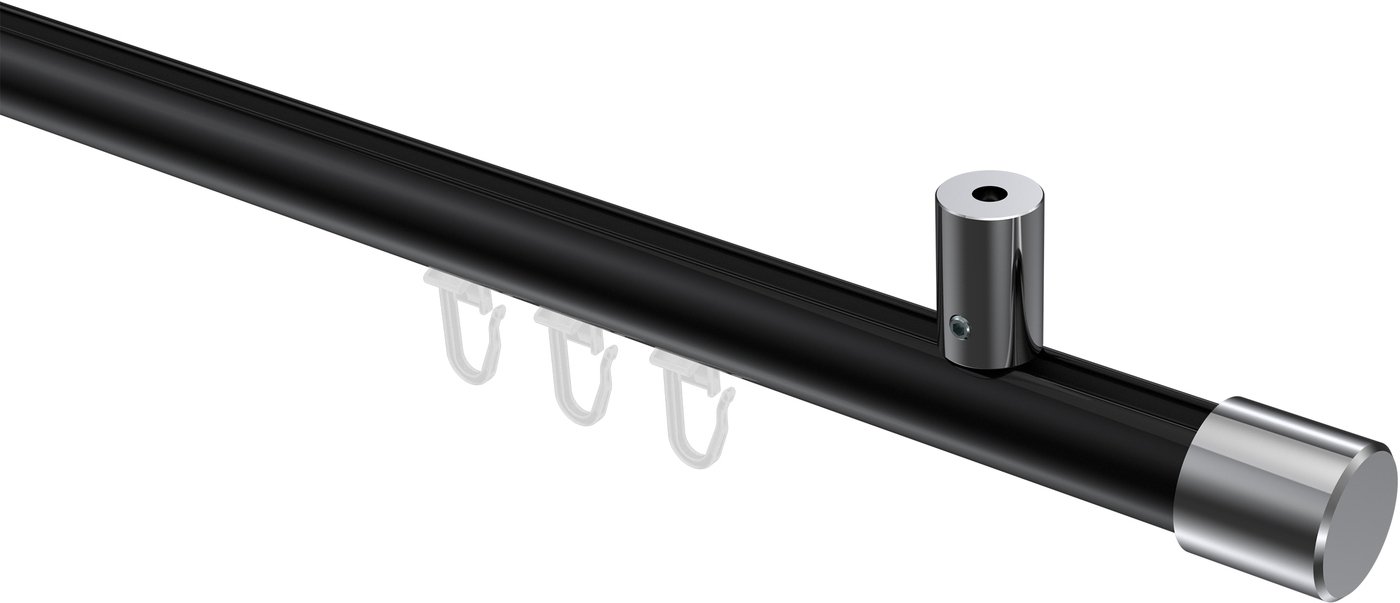 Gardinenstangen mit Innenlauf aus Aluminium / Metall in 20 mm Ø, 1-läufig, Modell SONIUS - Santo Schwarz / Chrom