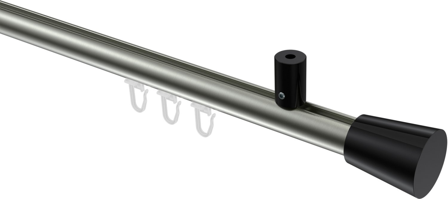 Gardinenstangen mit Innenlauf aus Aluminium / Metall in 20 mm Ø, 1-läufig, Modell SONIUS - Sitra Edelstahl-Optik / Schwarz