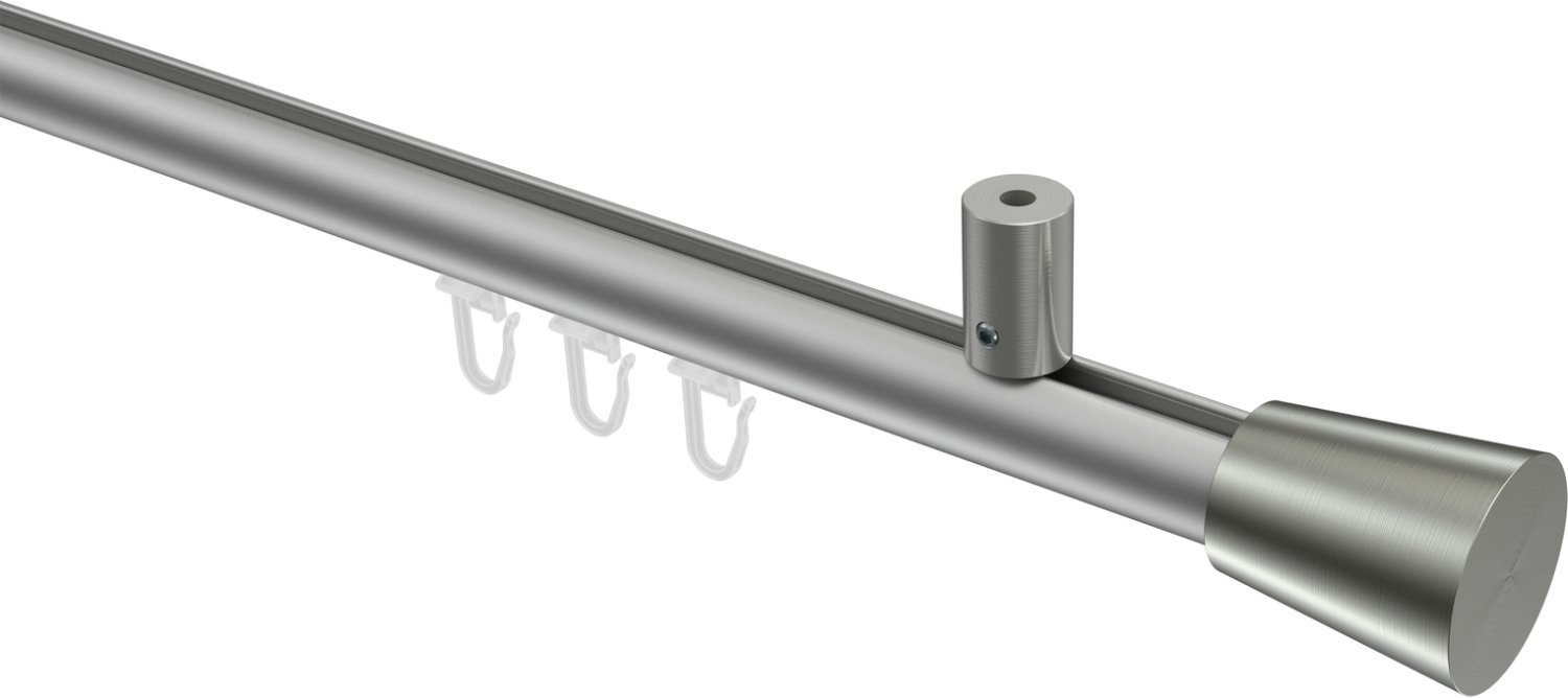 Gardinenstangen mit Innenlauf aus Aluminium / Metall in 20 mm Ø, 1-läufig, Modell SONIUS - Sitra Silbergrau / Edelstahl-Optik