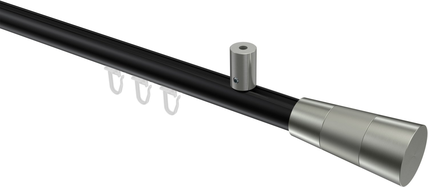 Informationen zu Innenlauf Gardinenstange Aluminium / Metall 20 mm Ø SONIUS - Tanara Schwarz / Edelstahl-Optik:
