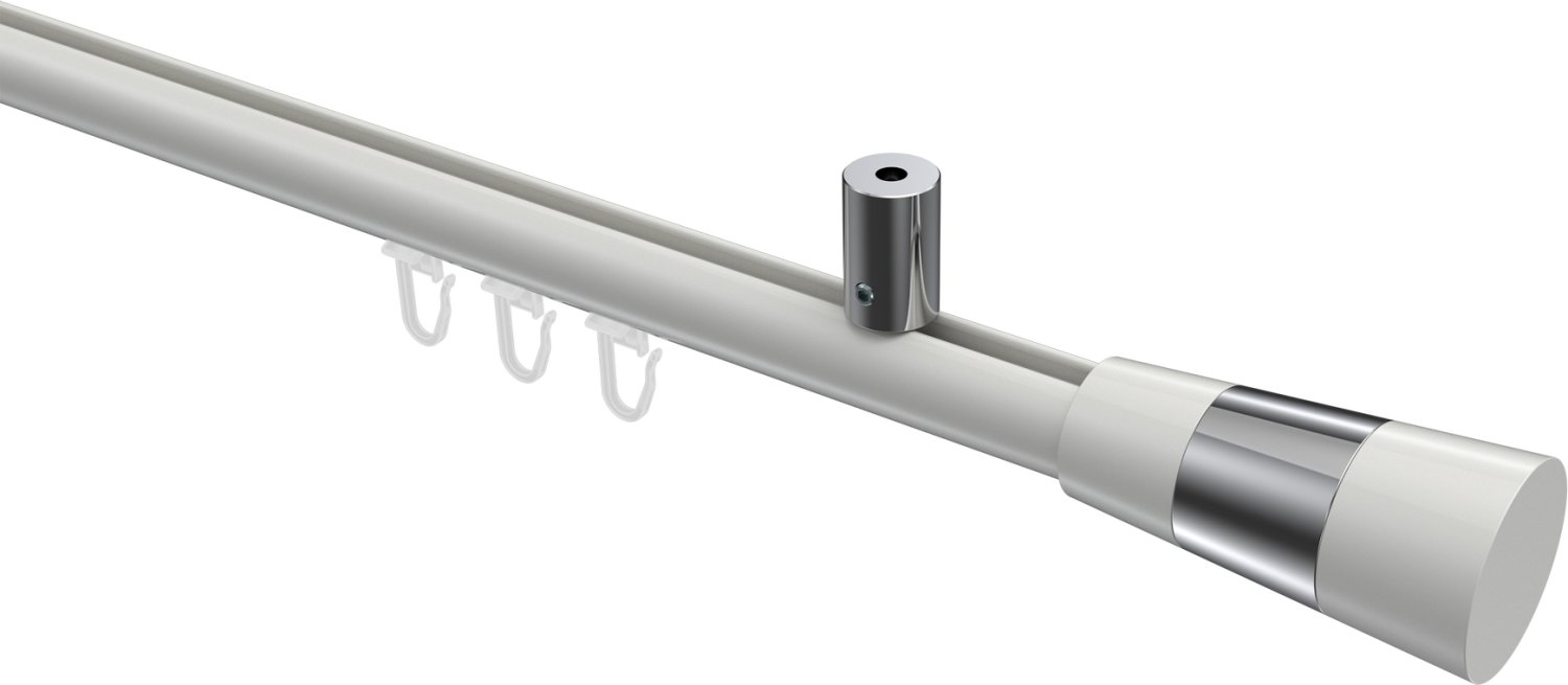 Gardinenstangen mit Innenlauf aus Aluminium / Metall in 20 mm Ø, 1-läufig, Modell SONIUS - Tanara Weiß / Chrom