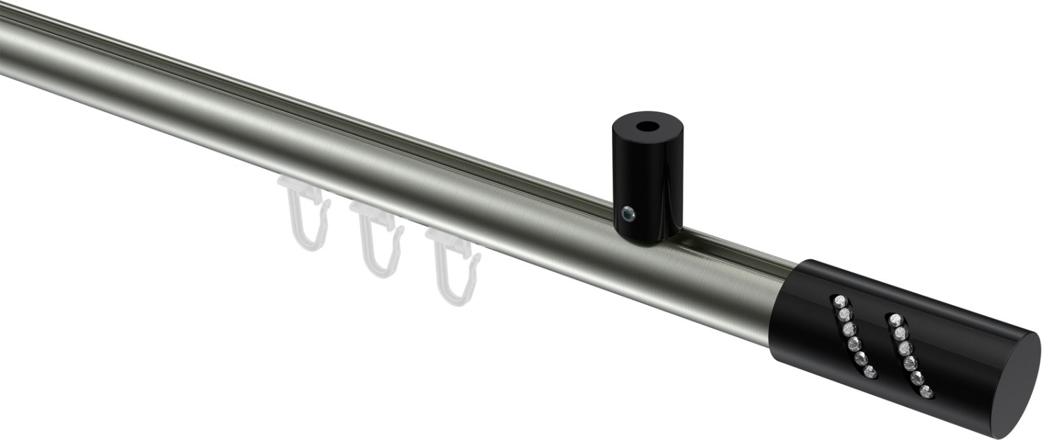 Gardinenstangen mit Innenlauf aus Aluminium / Metall in 20 mm Ø, 1-läufig, Modell SONIUS - Zoena Edelstahl-Optik / Schwarz