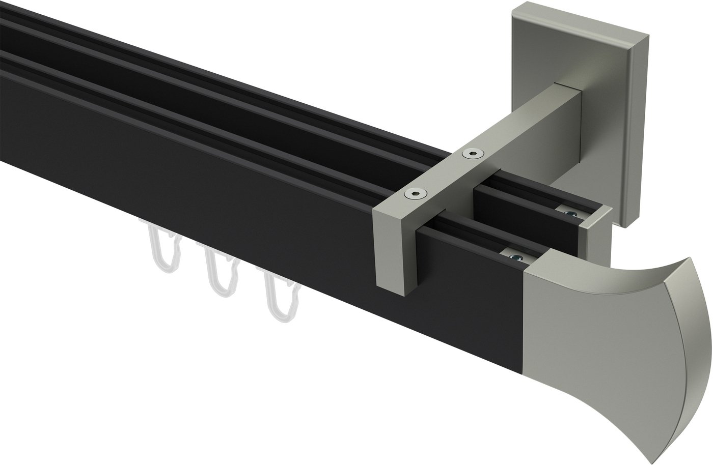 Gardinenstangen mit eckigem Innenlauf aus Aluminium / Metall in 14x35 mm, 2-läufig, Modell SMARTLINE - Conex Schwarz / Edelstahl-Optik