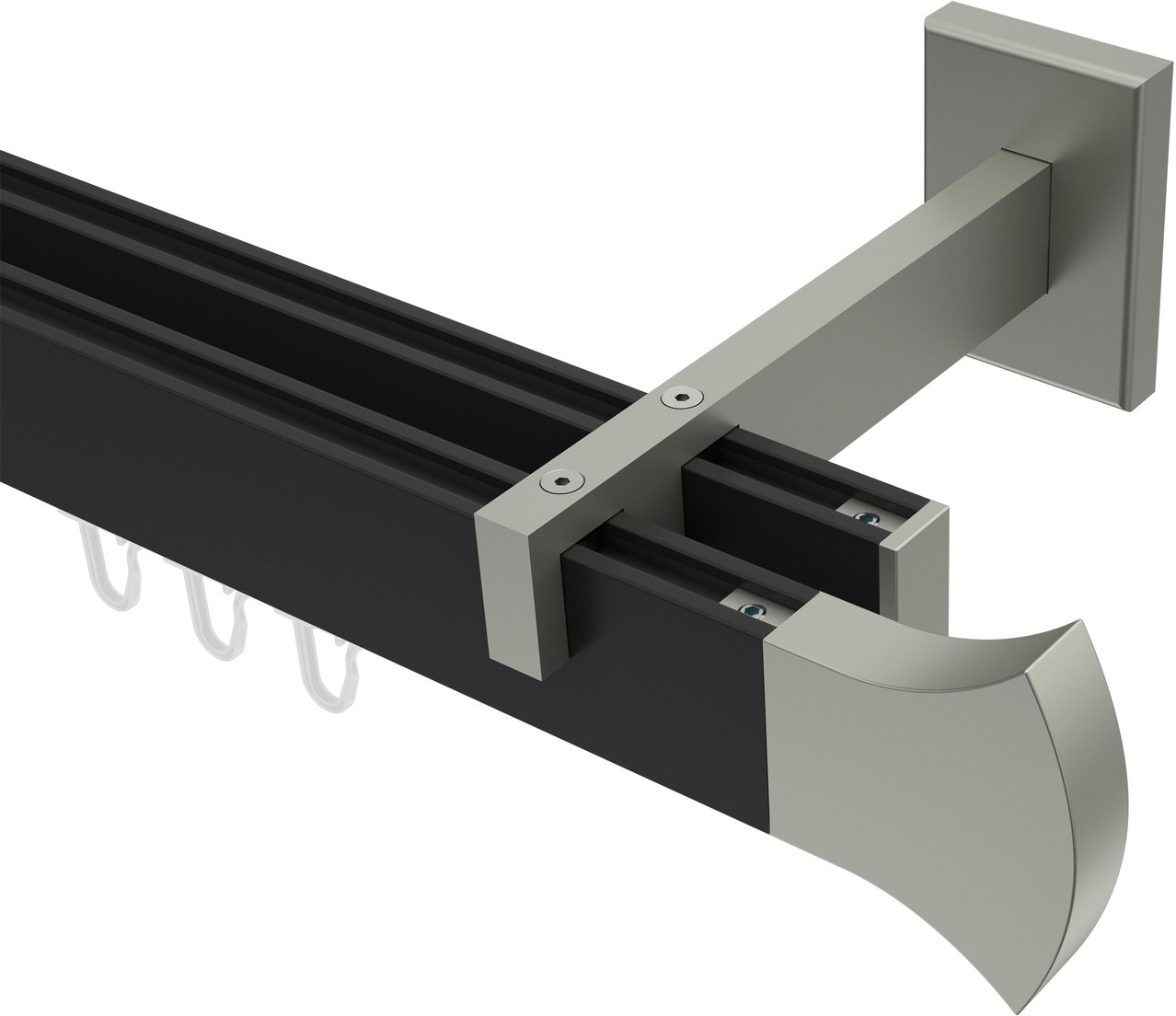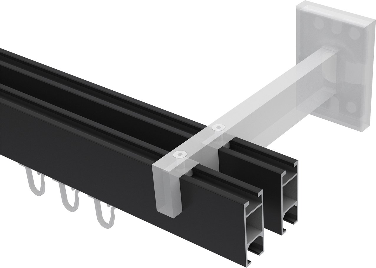 Gardinenstangen mit eckigem Innenlauf aus Aluminium / Metall in 14x35 mm, 2-läufig, Modell SMARTLINE - Conex Schwarz / Edelstahl-Optik (Wandabstand lang)