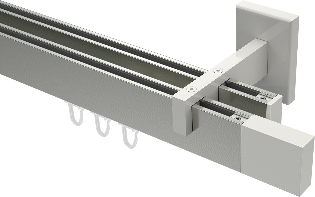Gardinenstangen mit eckigem Innenlauf aus Aluminium / Metall in 14x35 mm, 2-läufig, Modell SMARTLINE - Lox Edelstahl-Optik / Weiß
