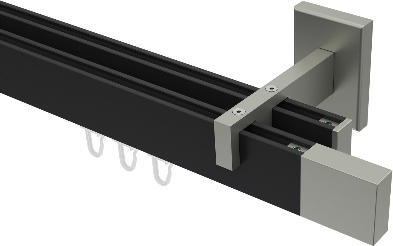 Gardinenstangen mit eckigem Innenlauf aus Aluminium / Metall in 14x35 mm, 2-läufig, Modell SMARTLINE - Lox Schwarz / Edelstahl-Optik