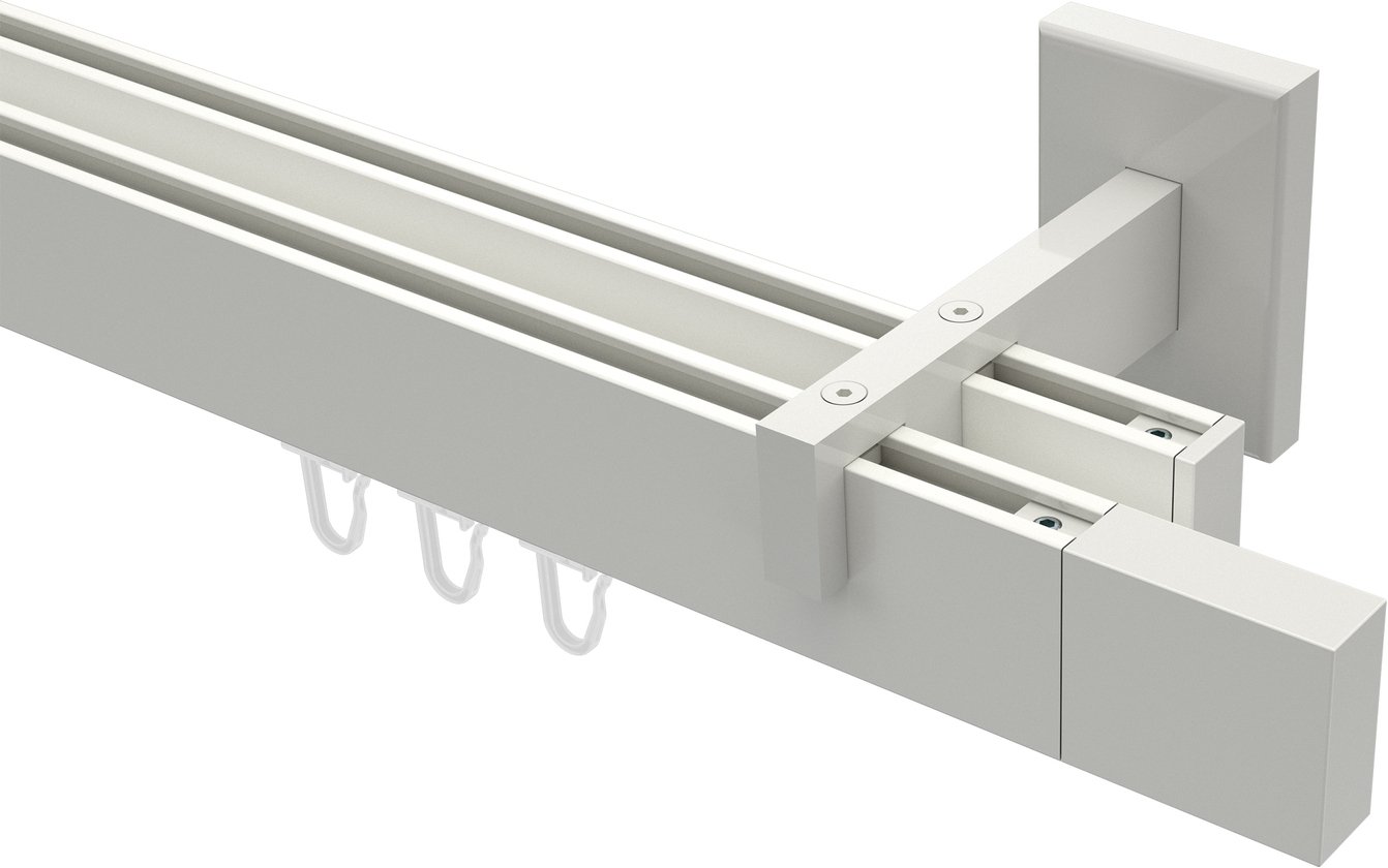 Gardinenstangen mit eckigem Innenlauf aus Aluminium / Metall in 14x35 mm, 2-läufig, Modell SMARTLINE - Lox Weiß
