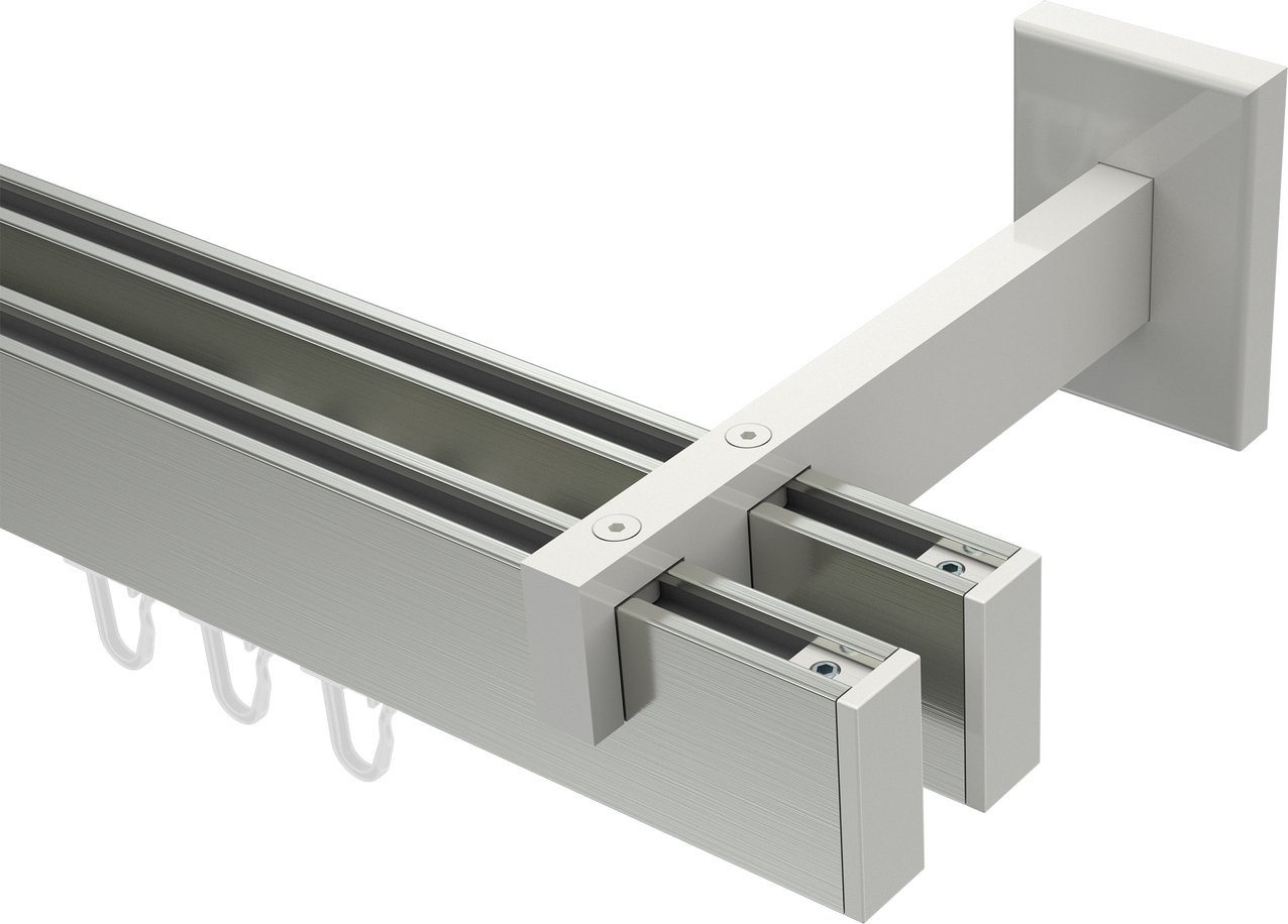 Gardinenstangen mit eckigem Innenlauf aus Aluminium / Metall in 14x35 mm, 2-läufig, Modell SMARTLINE - Paxo Edelstahl-Optik / Weiß (Wandabstand lang)
