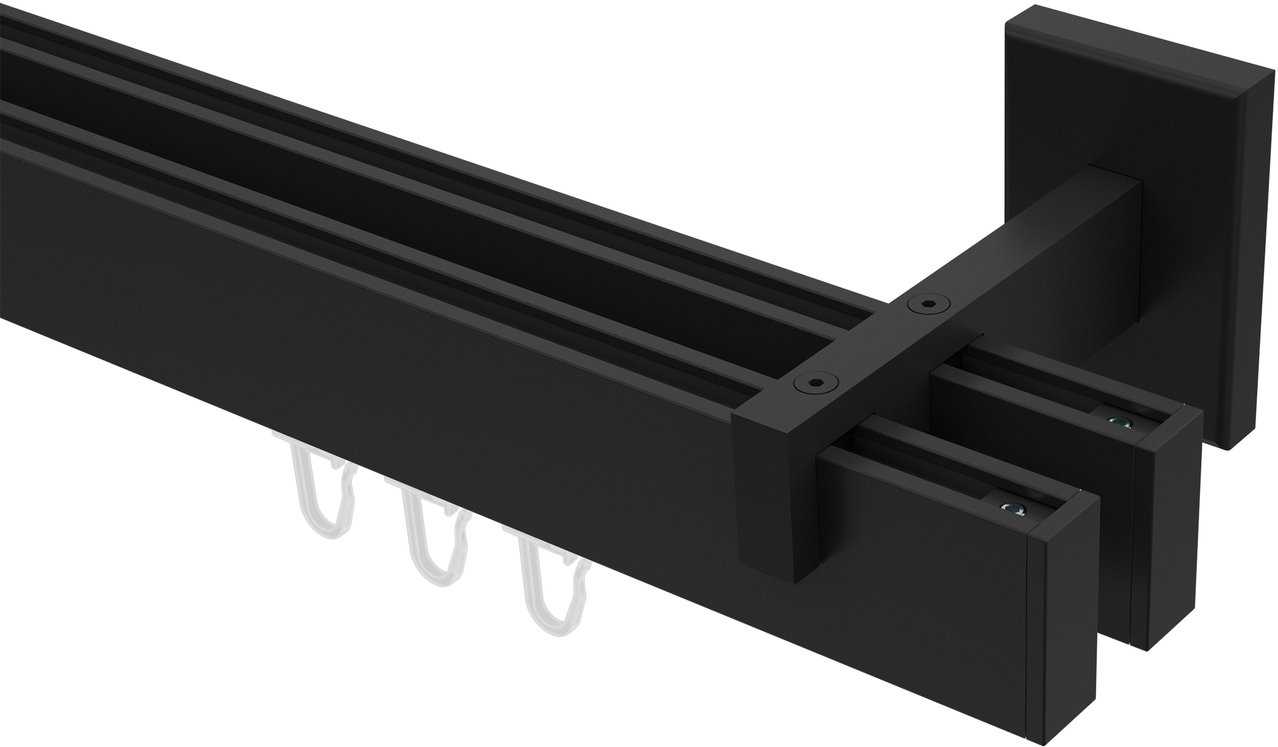 Gardinenstangen mit eckigem Innenlauf aus Aluminium / Metall in 14x35 mm, 2-läufig, Modell SMARTLINE - Paxo Schwarz