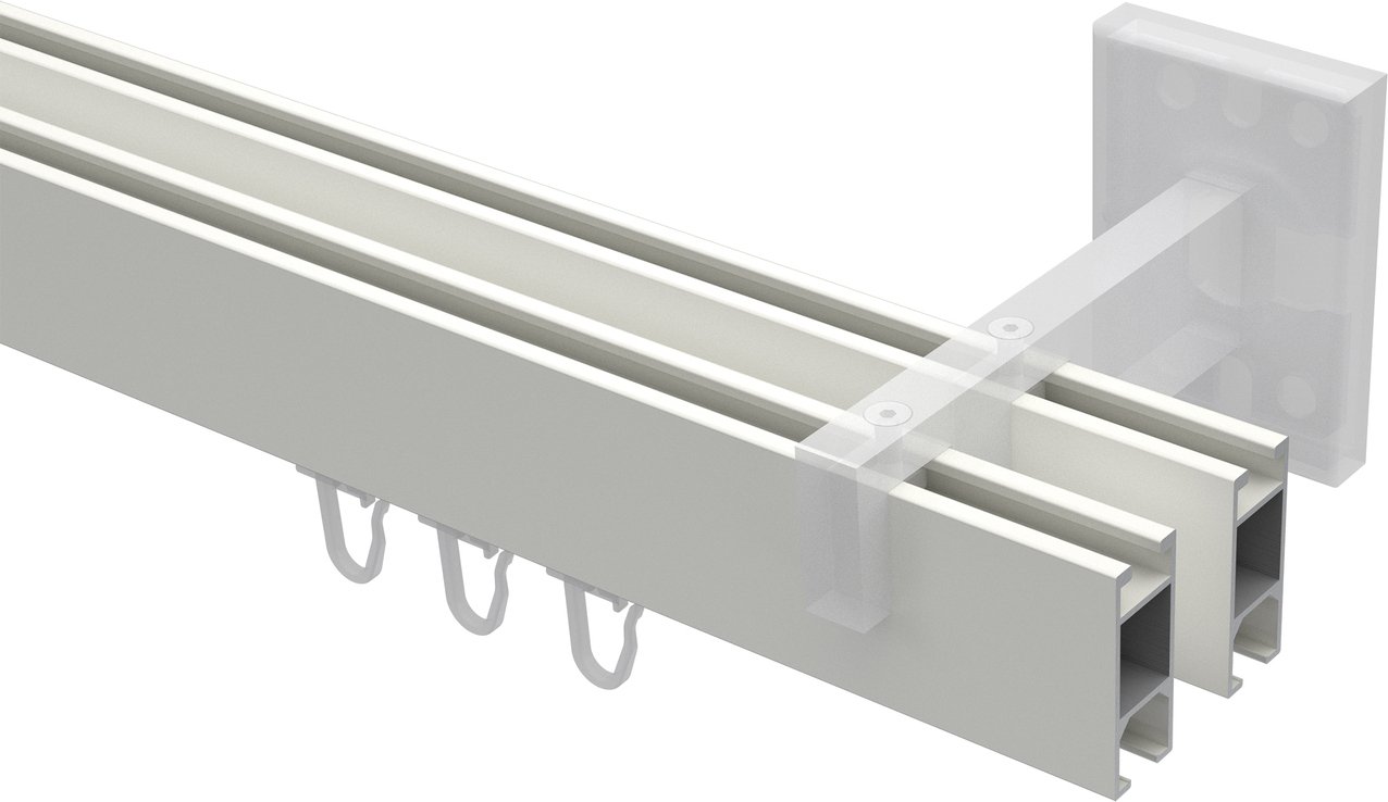 Gardinenstangen mit eckigem Innenlauf aus Aluminium / Metall in 14x35 mm, 2-läufig, Modell SMARTLINE - Paxo Weiß / Chrom