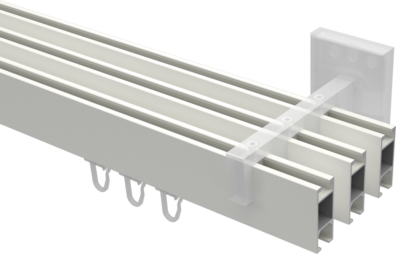 Gardinenstangen mit eckigem Innenlauf aus Aluminium / Metall in 14x35 mm, 3-läufig, Modell SMARTLINE - Conex Weiß / Chrom