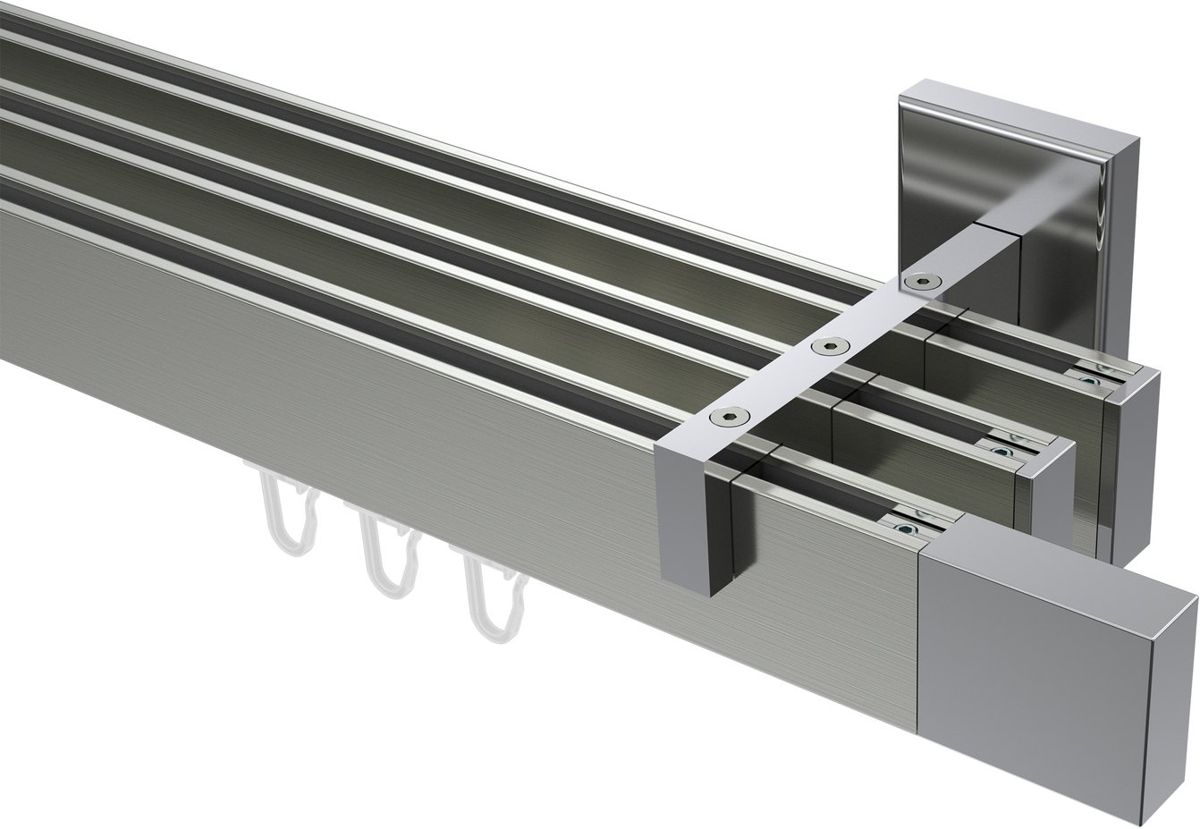 Gardinenstangen mit eckigem Innenlauf aus Aluminium / Metall in 14x35 mm, 3-läufig, Modell SMARTLINE - Lox Edelstahl-Optik / Chrom