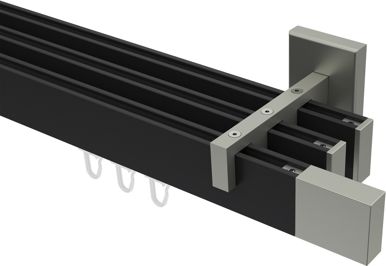 Gardinenstangen mit eckigem Innenlauf aus Aluminium / Metall in 14x35 mm, 3-läufig, Modell SMARTLINE - Lox Schwarz / Edelstahl-Optik