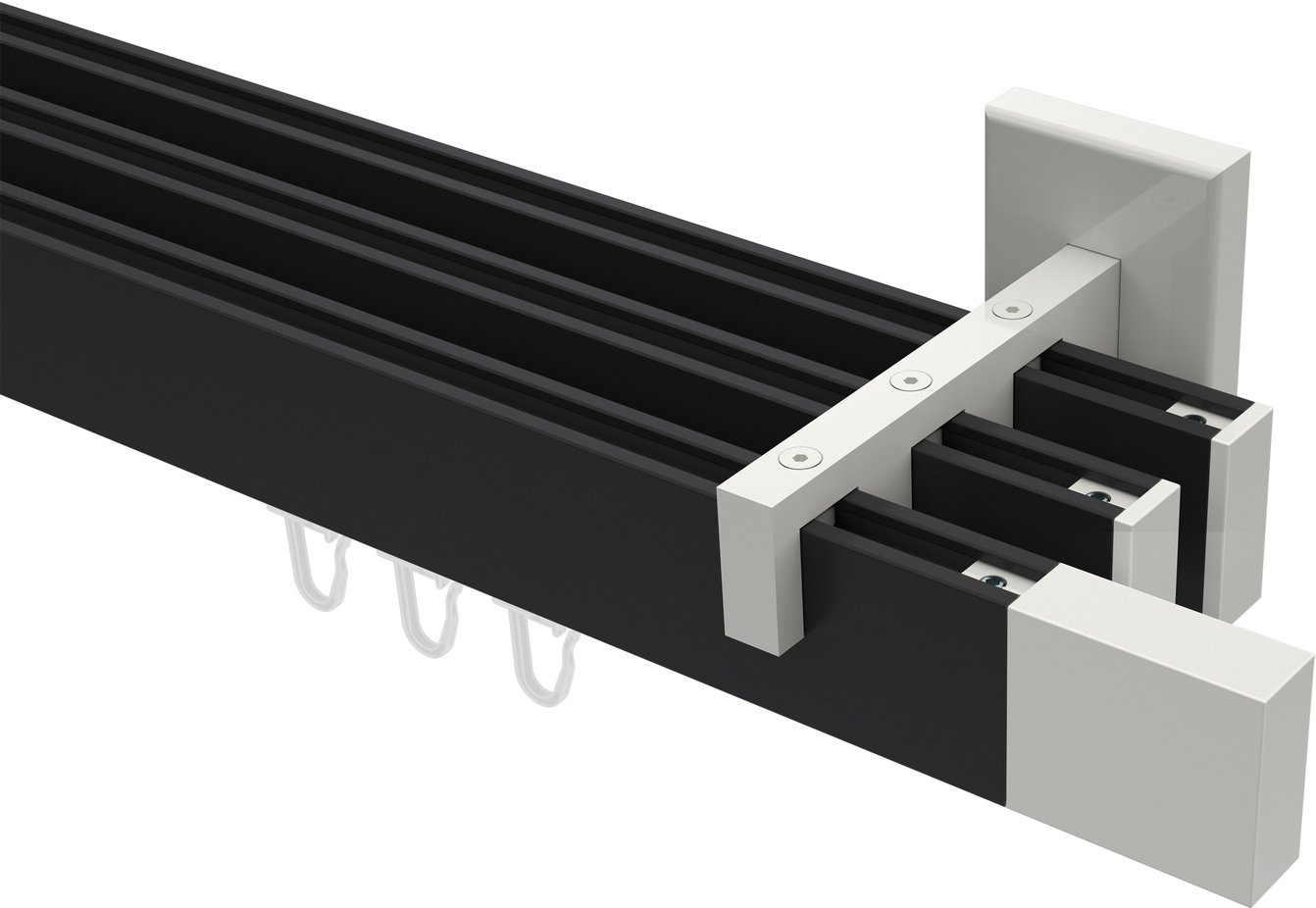Gardinenstangen mit eckigem Innenlauf aus Aluminium / Metall in 14x35 mm, 3-läufig, Modell SMARTLINE - Lox Schwarz / Weiß