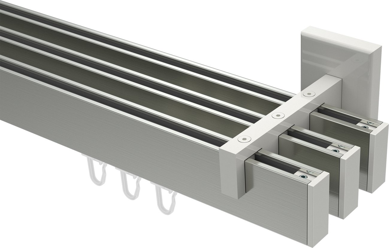 Gardinenstangen mit eckigem Innenlauf aus Aluminium / Metall in 14x35 mm, 3-läufig, Modell SMARTLINE - Paxo Edelstahl-Optik / Weiß