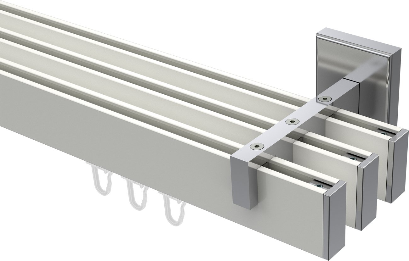 Gardinenstangen mit eckigem Innenlauf aus Aluminium / Metall in 14x35 mm, 3-läufig, Modell SMARTLINE - Paxo Weiß / Chrom