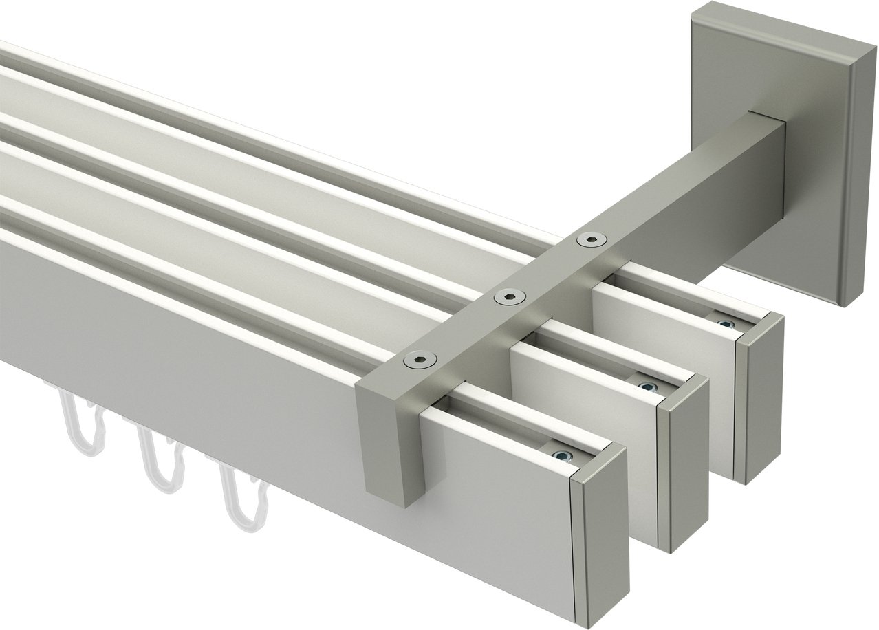 Gardinenstangen mit eckigem Innenlauf aus Aluminium / Metall in 14x35 mm, 3-läufig, Modell SMARTLINE - Paxo Weiß / Edelstahl-Optik (Wandabstand lang)