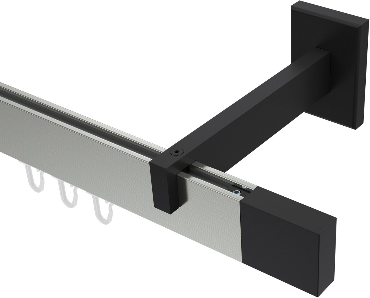 Gardinenstangen mit eckigem Innenlauf aus Aluminium / Metall in 14x35 mm, 1-läufig, Modell SMARTLINE - Lox Edelstahl-Optik / Schwarz (Wandabstand lang)