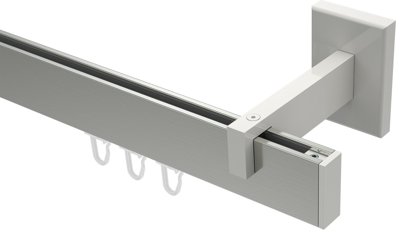 Gardinenstangen mit eckigem Innenlauf aus Aluminium / Metall in 14x35 mm, 1-läufig, Modell SMARTLINE - Paxo Edelstahl-Optik / Weiß