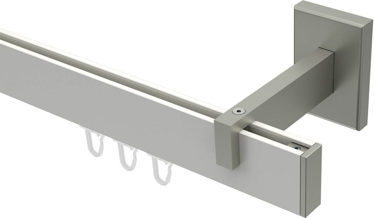 Gardinenstangen mit eckigem Innenlauf aus Aluminium / Metall in 14x35 mm, 1-läufig, Modell SMARTLINE - Paxo Weiß / Edelstahl-Optik