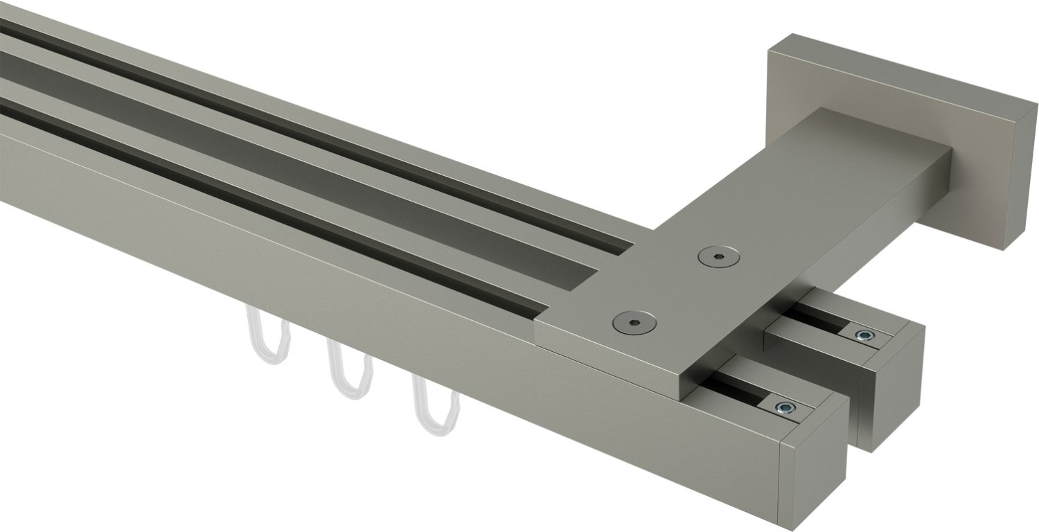 Gardinenstangen mit eckigem Innenlauf 20x20 mm aus Aluminium / Metall, 2-läufig, Modell QUADLINE - Sono Satin-Silber