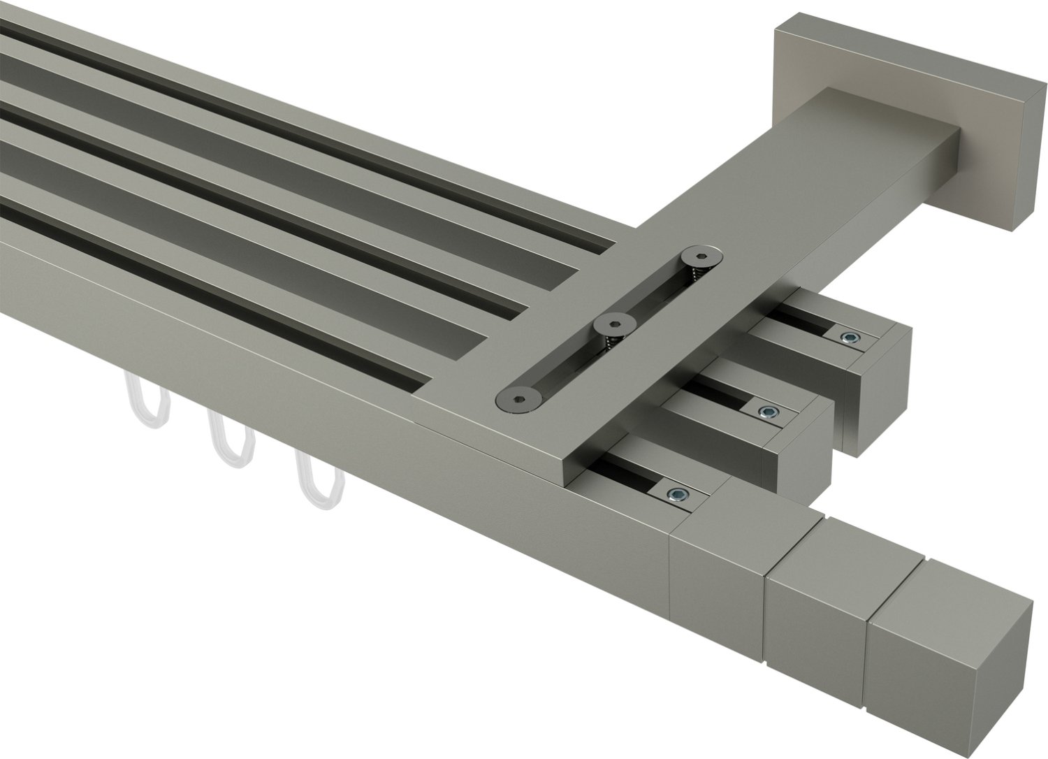 Gardinenstangen mit eckigem Innenlauf 20x20 mm aus Aluminium / Metall, 3-läufig, Modell QUADLINE (Multi) - Cubes Satin-Silber