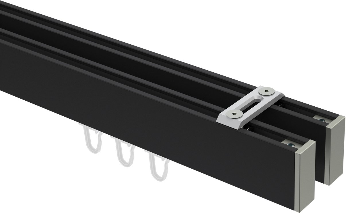 Gardinenstangen mit eckigem Innenlauf Deckenmontage aus Aluminium / Metall in 14x35 mm, 2-läufig, Modell SMARTLINE (Universal) - Paxo Schwarz / Edelstahl-Optik