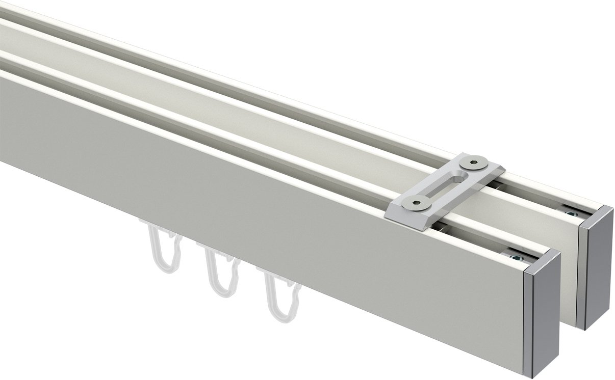 Gardinenstangen mit eckigem Innenlauf Deckenmontage aus Aluminium / Metall in 14x35 mm, 2-läufig, Modell SMARTLINE (Universal) - Paxo Weiß / Chrom