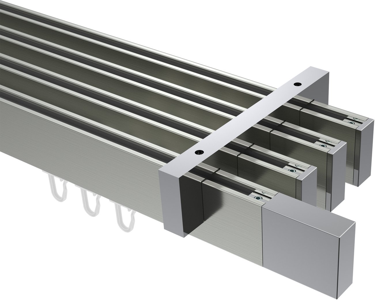 Gardinenstangen mit eckigem Innenlauf Deckenmontage aus Aluminium / Metall in 14x35 mm, 4-läufig, Modell SMARTLINE - Lox Edelstahl-Optik / Chrom