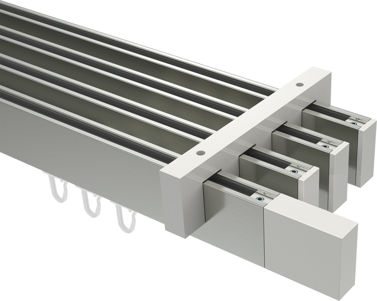 Gardinenstangen mit eckigem Innenlauf Deckenmontage aus Aluminium / Metall in 14x35 mm, 4-läufig, Modell SMARTLINE - Lox Edelstahl-Optik / Weiß
