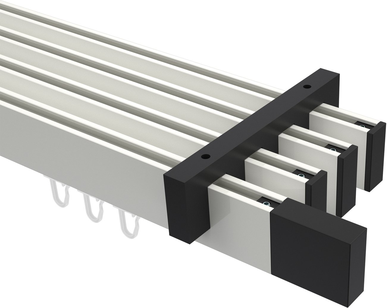 Gardinenstangen mit eckigem Innenlauf Deckenmontage aus Aluminium / Metall in 14x35 mm, 4-läufig, Modell SMARTLINE - Lox Weiß / Schwarz