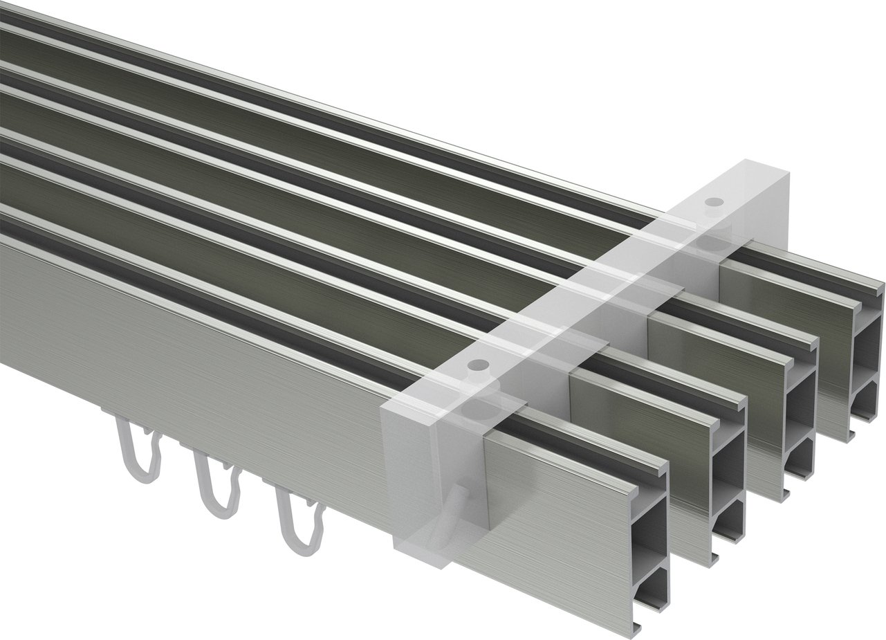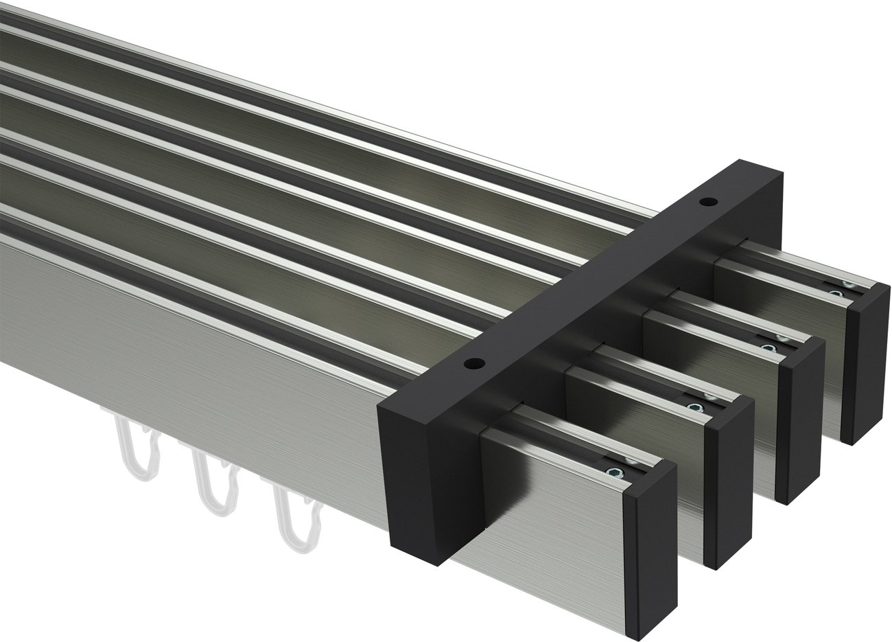 Gardinenstangen mit eckigem Innenlauf Deckenmontage aus Aluminium / Metall in 14x35 mm, 4-läufig, Modell SMARTLINE - Paxo Edelstahl-Optik / Schwarz