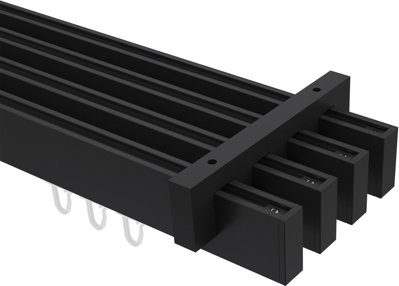 Gardinenstangen mit eckigem Innenlauf Deckenmontage aus Aluminium / Metall in 14x35 mm, 4-läufig, Modell SMARTLINE - Paxo Schwarz