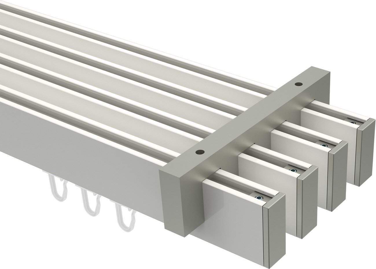 Gardinenstangen mit eckigem Innenlauf Deckenmontage aus Aluminium / Metall in 14x35 mm, 4-läufig, Modell SMARTLINE - Paxo Weiß / Edelstahl-Optik