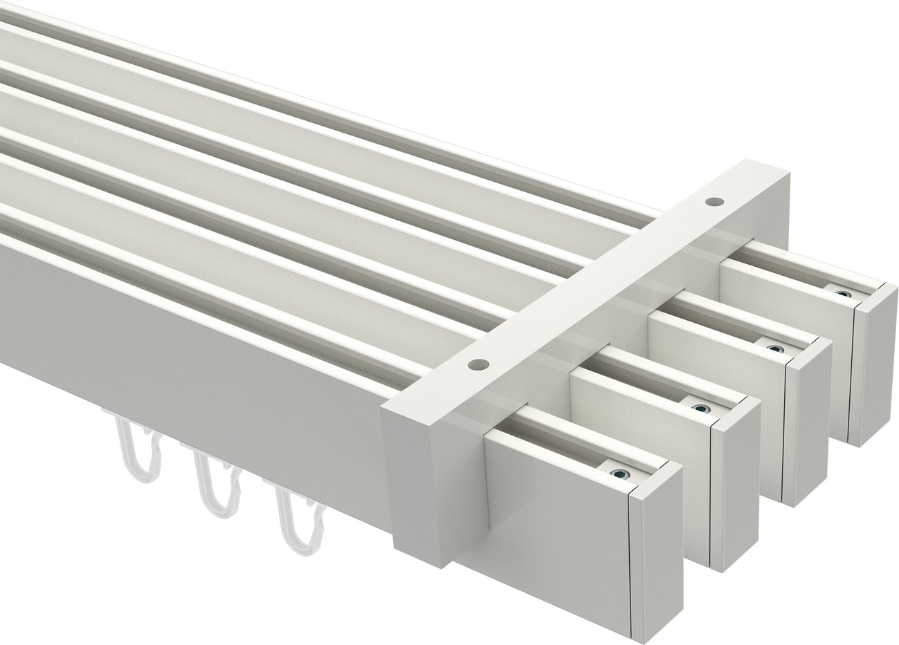 Gardinenstangen mit eckigem Innenlauf Deckenmontage aus Aluminium / Metall in 14x35 mm, 4-läufig, Modell SMARTLINE - Paxo Weiß