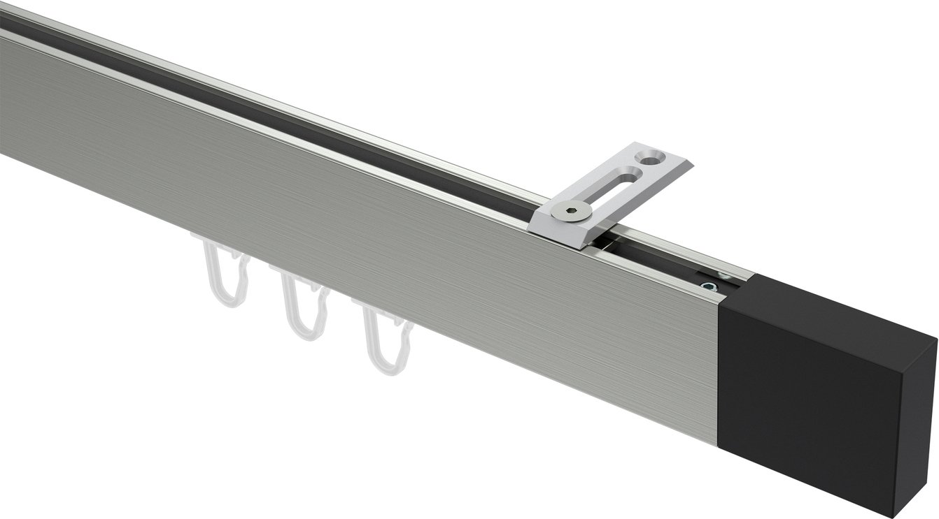 Gardinenstangen mit eckigem Innenlauf Deckenmontage aus Aluminium / Metall in 14x35 mm, 1-läufig, Modell SMARTLINE (Universal) - Lox Edelstahl-Optik / Schwarz