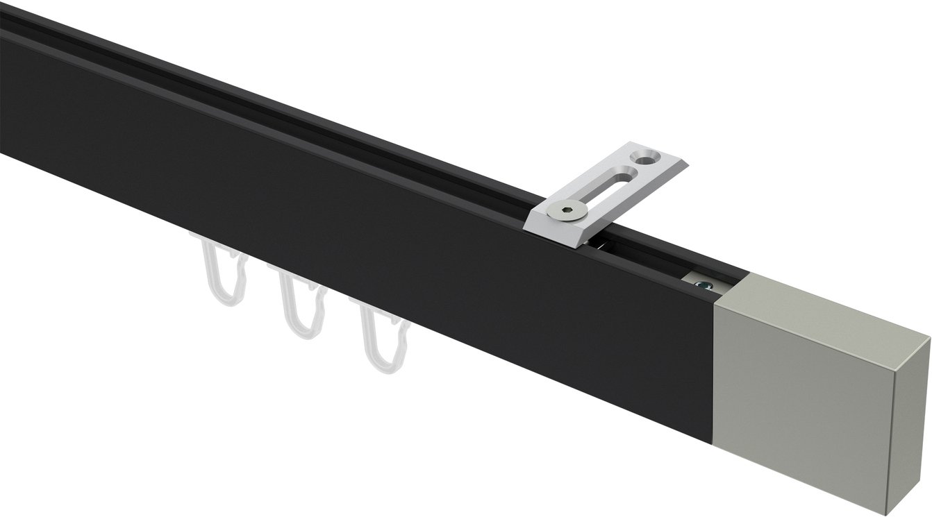 Gardinenstangen mit eckigem Innenlauf Deckenmontage aus Aluminium / Metall in 14x35 mm, 1-läufig, Modell SMARTLINE (Universal) - Lox Schwarz / Edelstahl-Optik