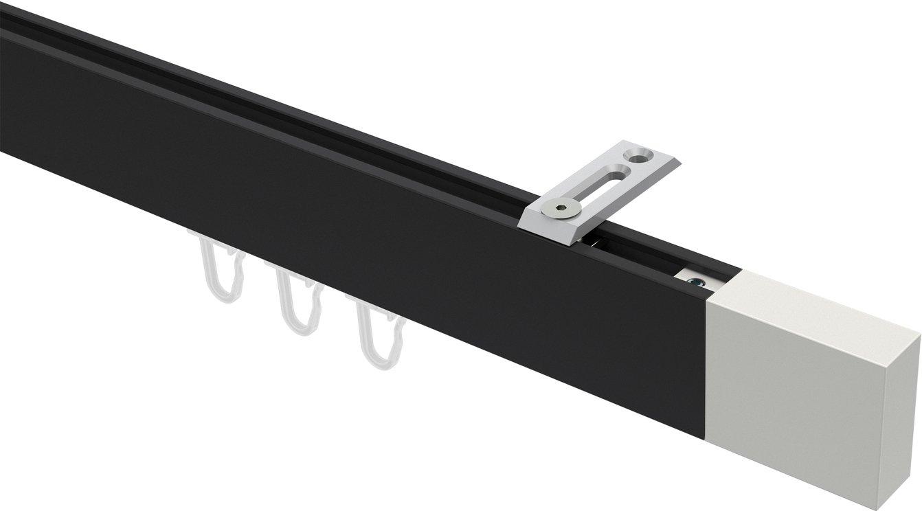 Gardinenstangen mit eckigem Innenlauf Deckenmontage aus Aluminium / Metall in 14x35 mm, 1-läufig, Modell SMARTLINE (Universal) - Lox Schwarz / Weiß