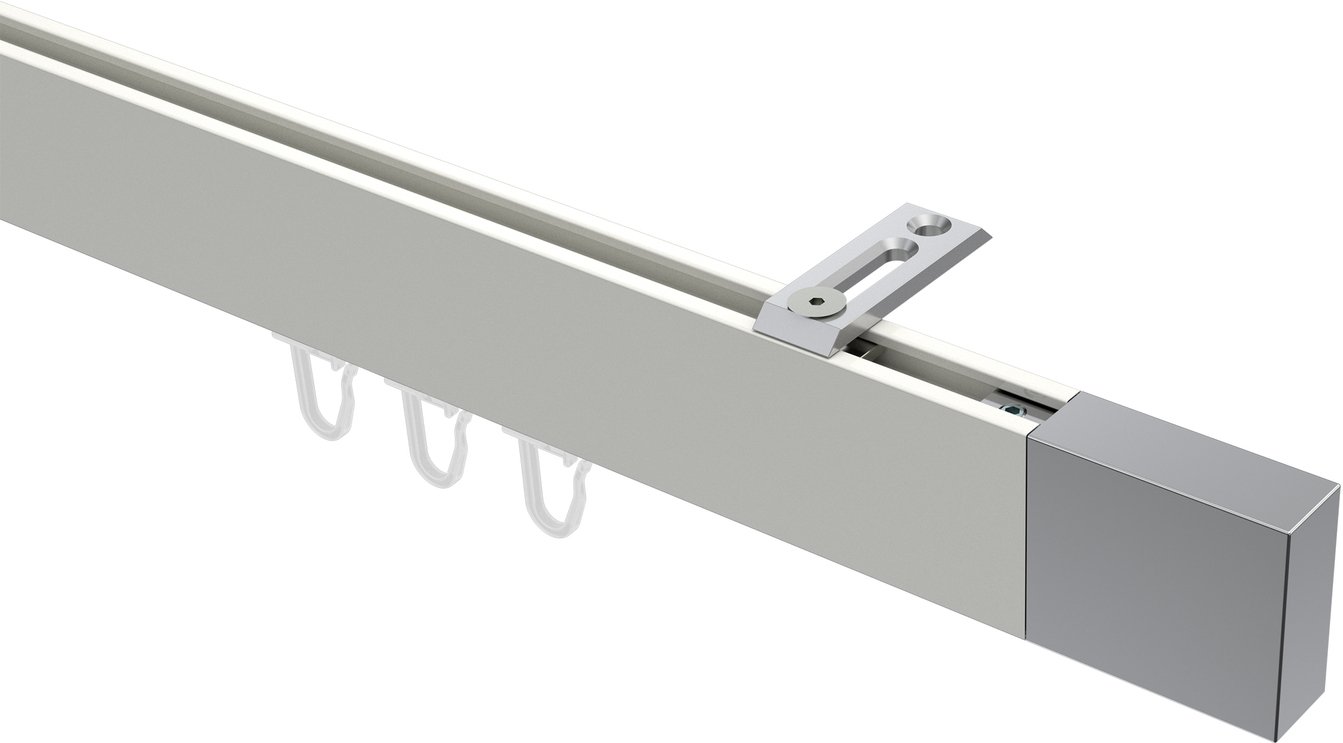 Gardinenstangen mit eckigem Innenlauf Deckenmontage aus Aluminium / Metall in 14x35 mm, 1-läufig, Modell SMARTLINE (Universal) - Lox Weiß / Chrom