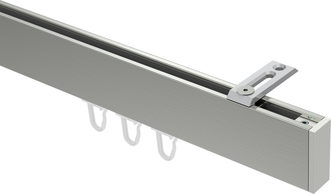 Gardinenstangen mit eckigem Innenlauf Deckenmontage aus Aluminium / Metall in 14x35 mm, 1-läufig, Modell SMARTLINE (Universal) - Paxo Edelstahl-Optik / Weiß